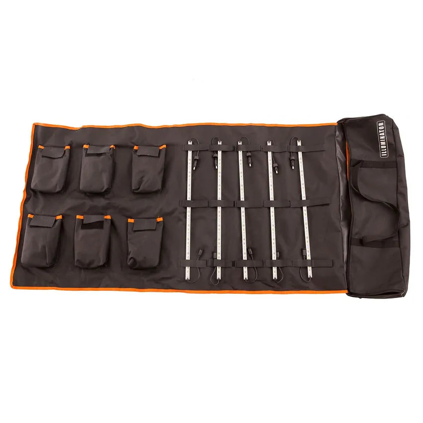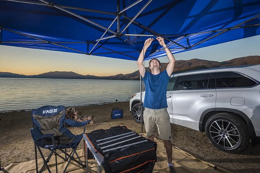 With magnets built into each bar as well as the option of using the included velcro straps you can easily mount this kit on your roofrack, gazebo or awning and easy.