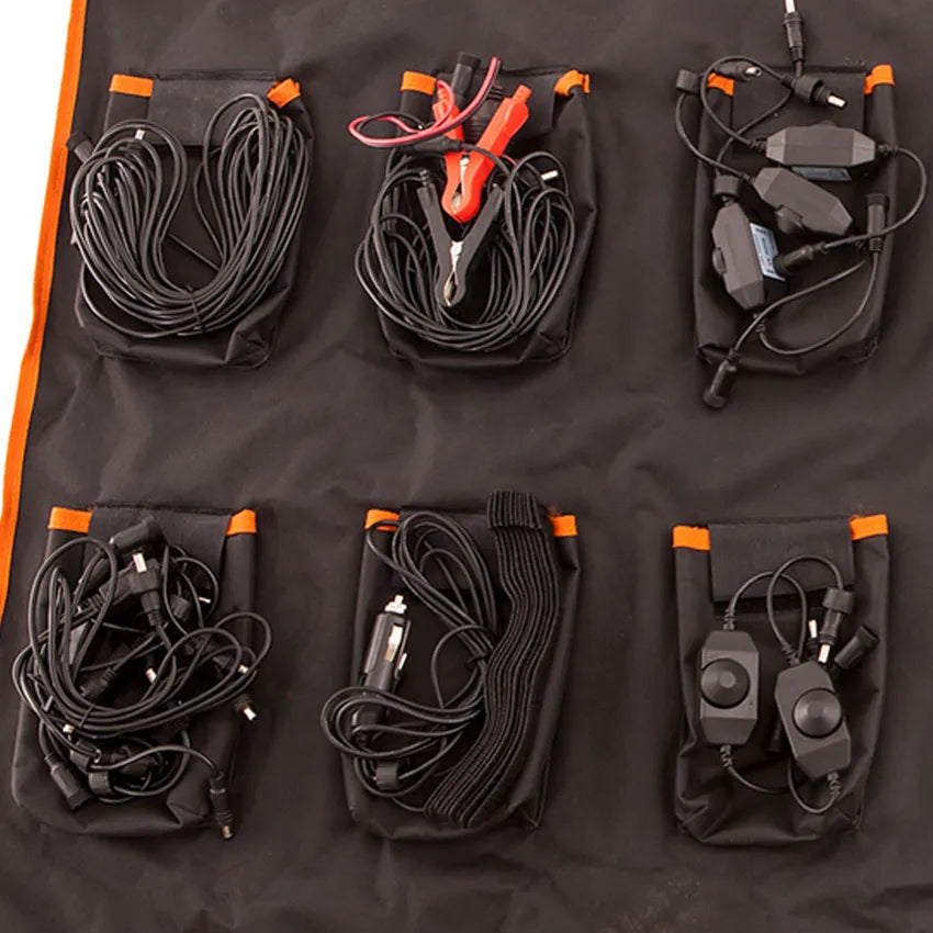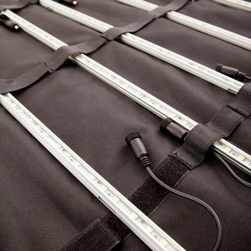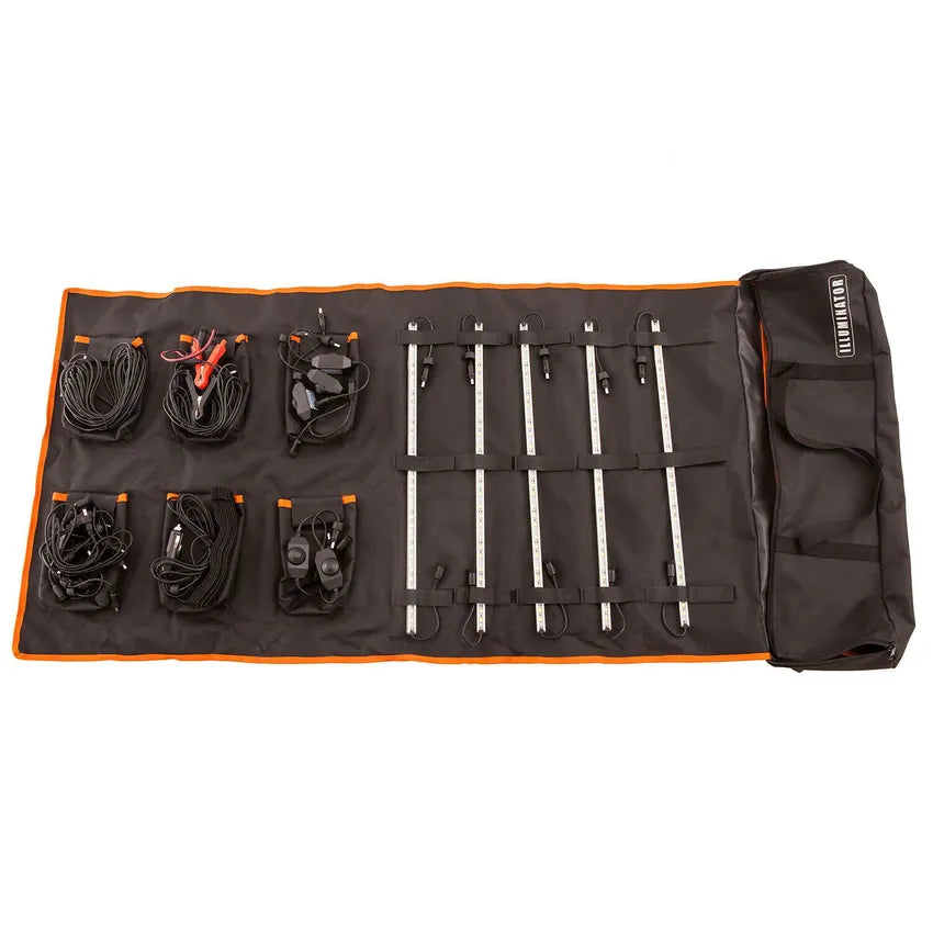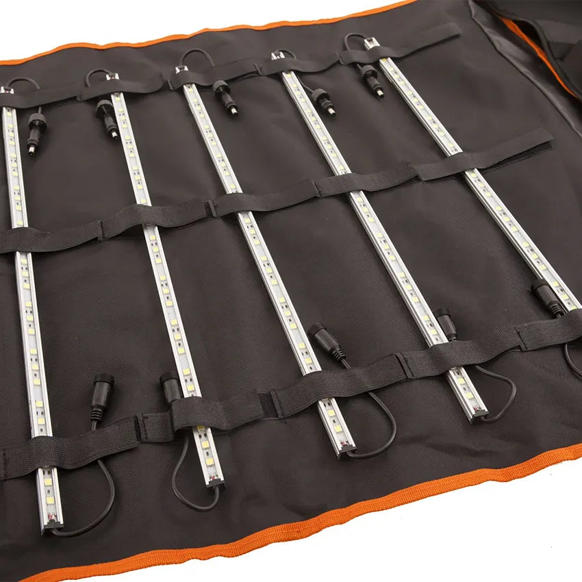 It comes with 5 fully waterproof 50cm magnetic LED Bars as well as includes splitters, 5x dimmer switches and up to 19m cable extensions + carrycase organiser.