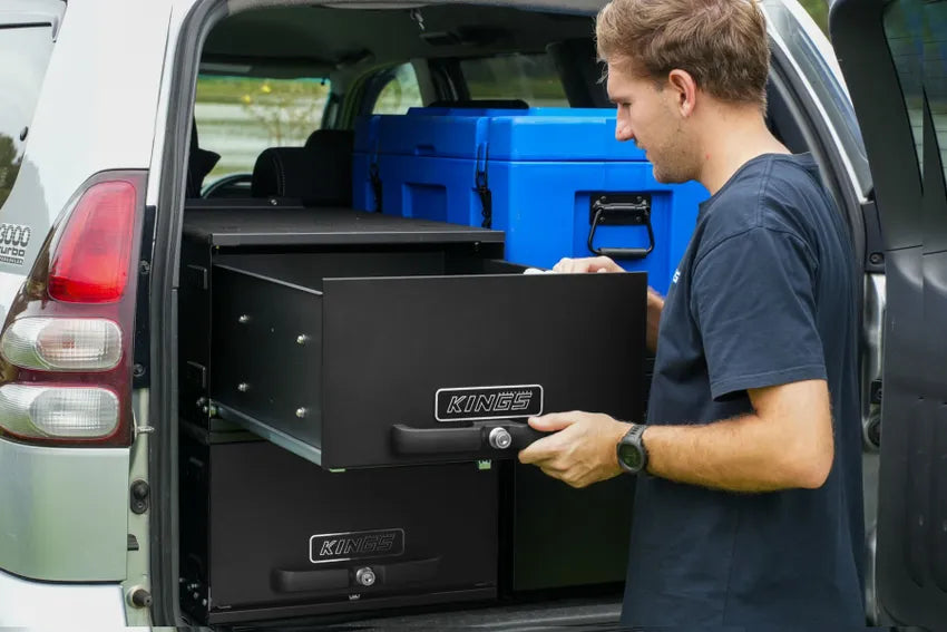 Whether for weekend getaways, long trips, or a mobile workshop, our Adventure Kings drawer accessories have you covered. From DIY wing kits, camp kitchens, dividers and Battery trays, these accessories integrate seamlessly with the range of Kings Drawers.