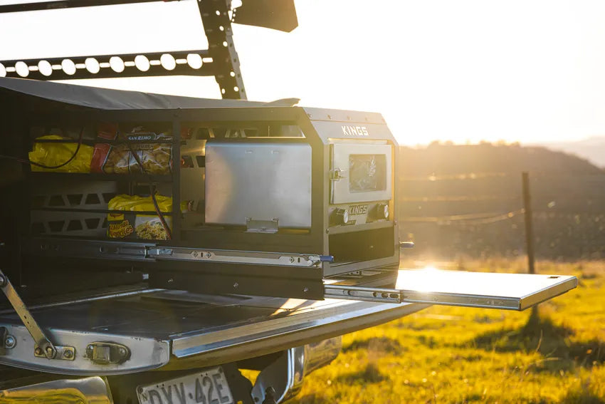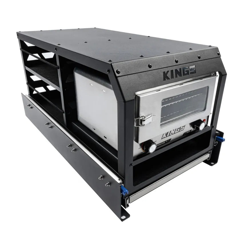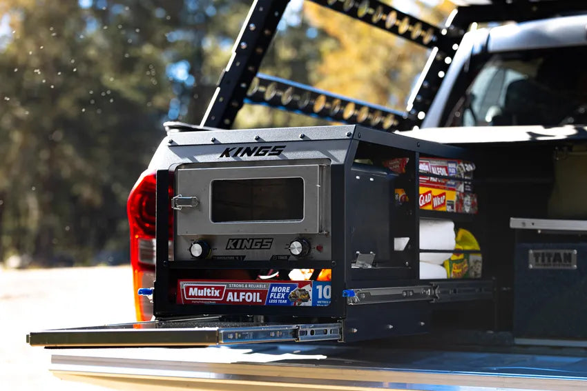 The Kings Pantry Slide is an amazing upgrade for any vehicle or trailer. Bundle it with the Kings 12v Adventure Oven and you’ve got the perfect pantry for work or play!