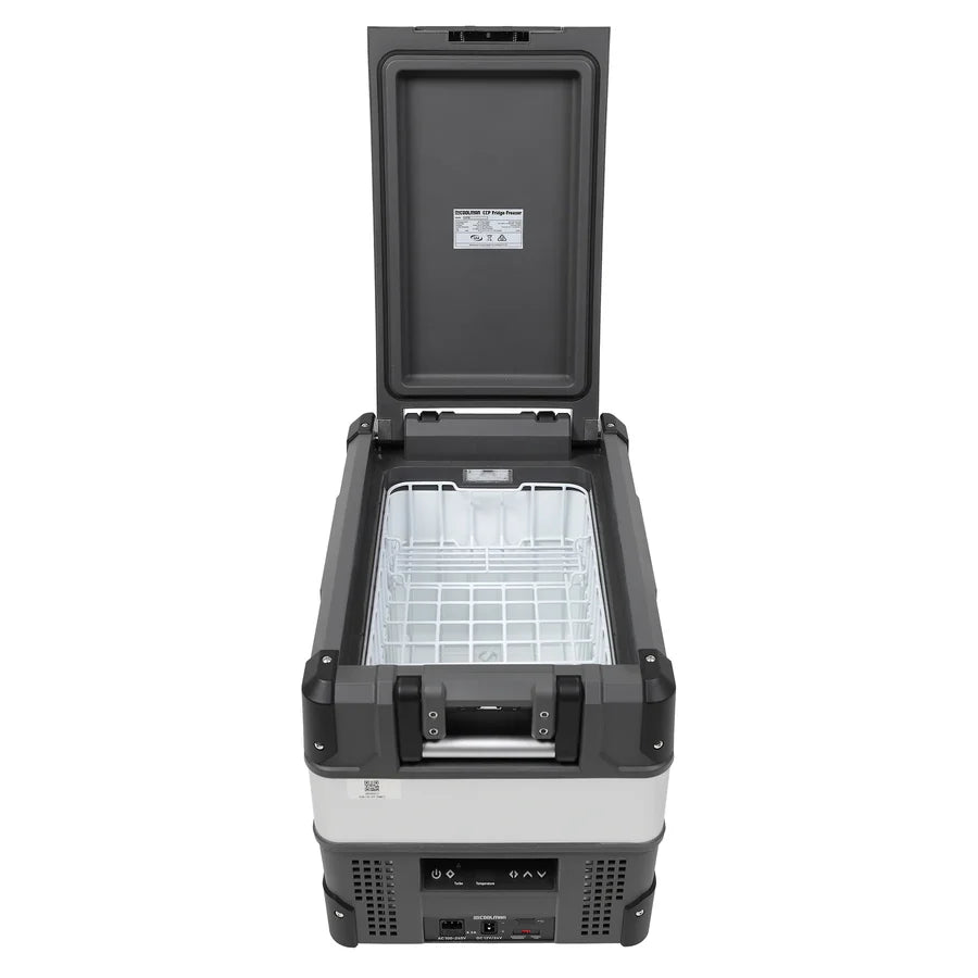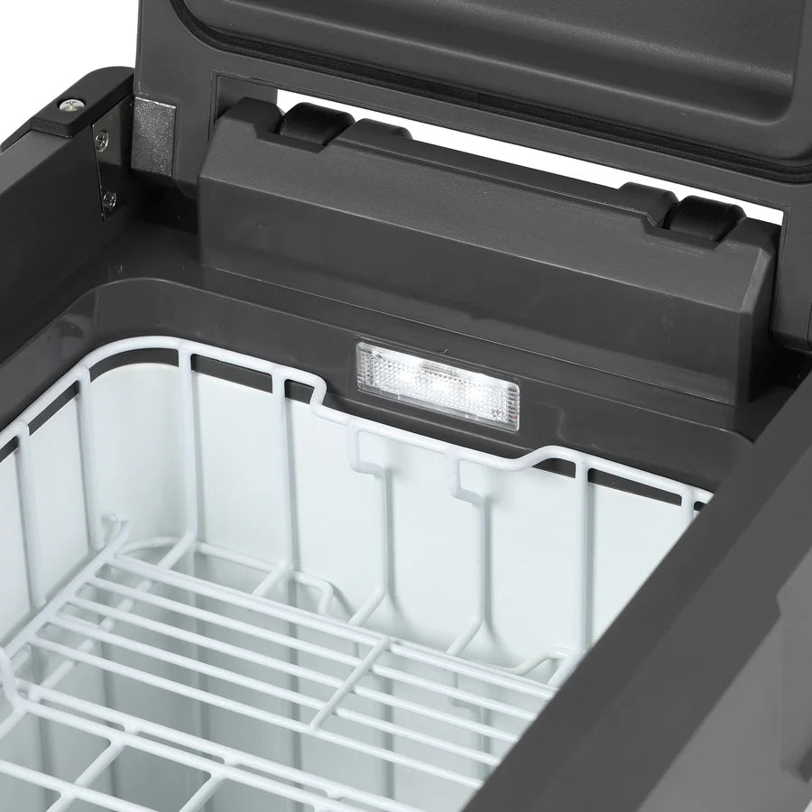 Showcasing our patented Blue-Gen compressor which operates on 12/24V and 240V, the fridge comes with great features like DC input at both ends to make it easy to plug into your car, divided storage options with removable baskets and Bluetooth wireless connectivity.