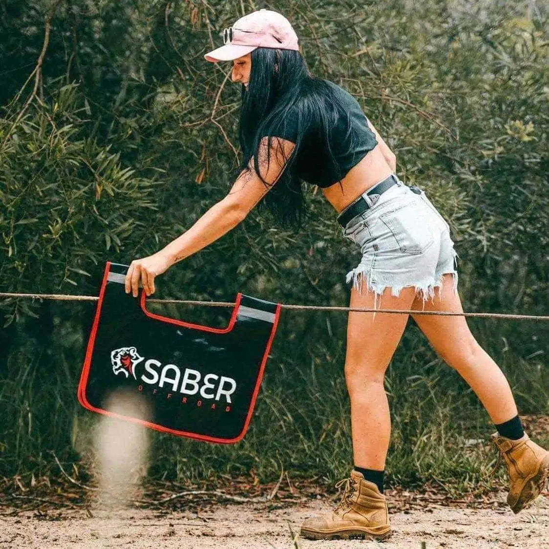 The Saber Offroad Winch Damper weighs in at 1kg and measures up at 500mm x 450mm when folded to provide the best protection should a winch cable snap. The bright red border and reflective tape on the damper offer strong visibility for those around. Heavy-duty Velcro strips also allow the damper to stay fixed in place while in use. Internal pockets are included too, to allow for the addition of extra weight whilst using the damper.