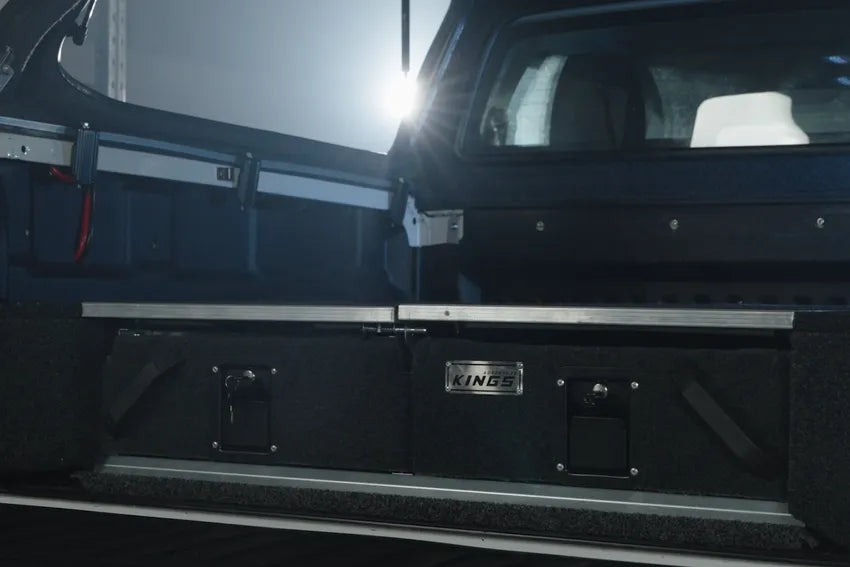 There’s no flat-pack headaches here - Kings drawers come 95% pre-assembled and can be installed at home very easily using basic hand tools (drill required for dual-cab ute tub installation). Clear colour instructions are included in the box, and step-by-step installation videos are available on our Youtube channel and in the ‘Videos’ tab at the top of this page.