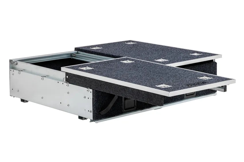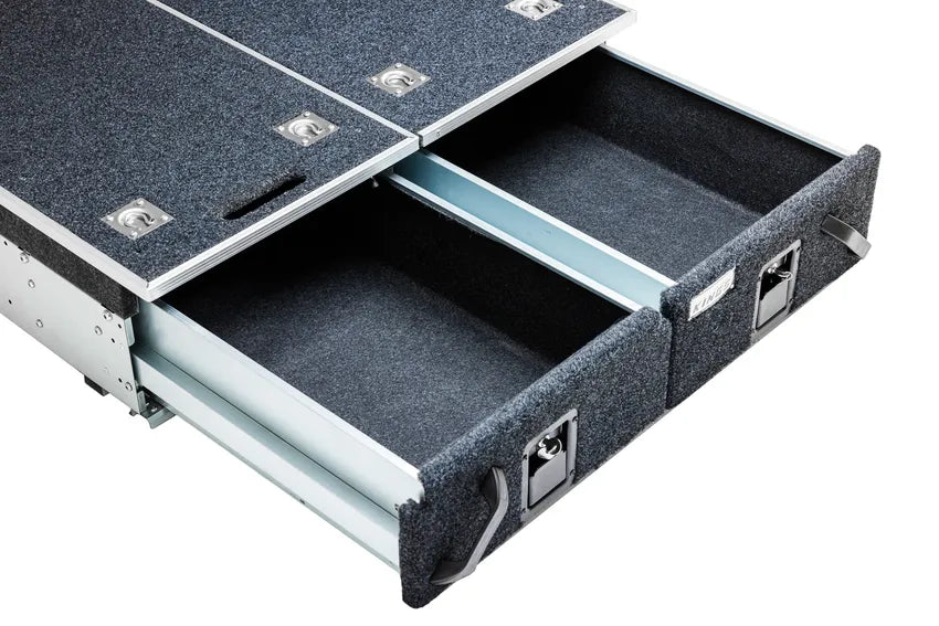 Got a mid-sized 4WD wagon, like a Prado or a Pajero, or a large SUV? Here’s the ultimate set of twin storage drawers! The Adventure Kings 900mm Twin Drawers are built tough, work incredibly well and take your wagon store game to a whole new level. They measure in at just 900mm long, by 1000mm wide, by 270mm high*, which makes them the perfect set of twin storage drawers for many large SUVs and mid-sized 4WD wagons!